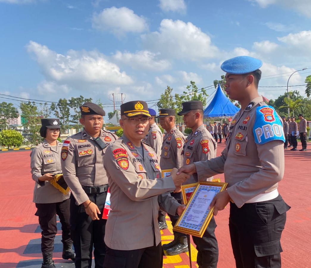 Pemberian penghargaan tersebut diberikan saat apel jam pimpinan di lapangan Bhayangkara Polres Bintan, Rabu (27/9/2023).