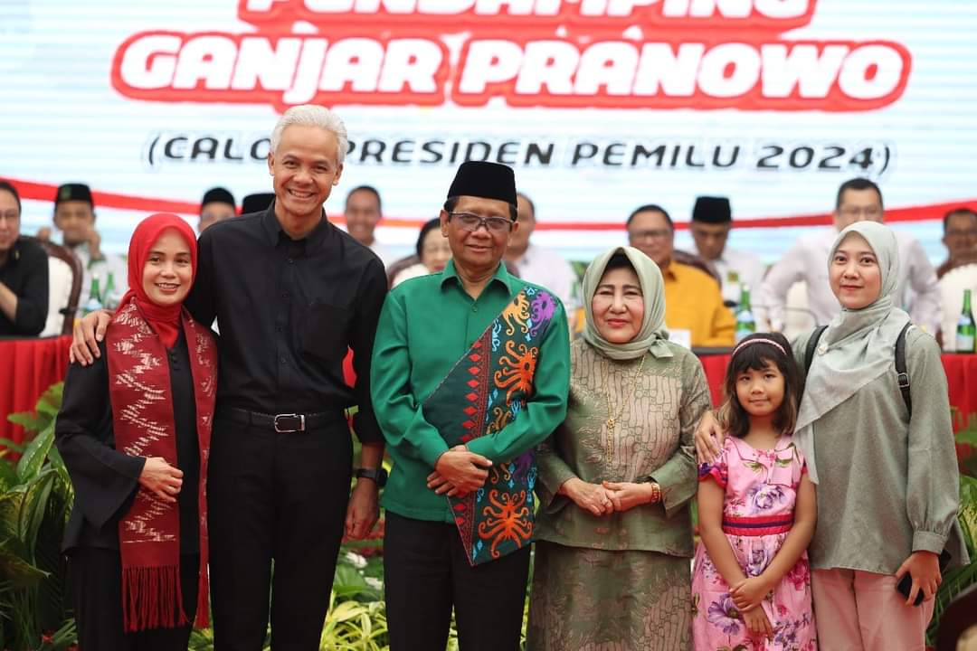 Usai pembacaan pengumuman itu, Ganjar dan Mahfud MD muncul di ruangan bersama-sama. Keduanya didampingi oleh istri masing-masing, yakni Siti Atikoh dan Zaizatun Nihayati. Tepuk tangan meriah dari ratusan pengurus partai yang hadir bergemuruh menyambut pasangan capres cawapres koalisi PDIP, PPP, Perindo dan Hanura itu.