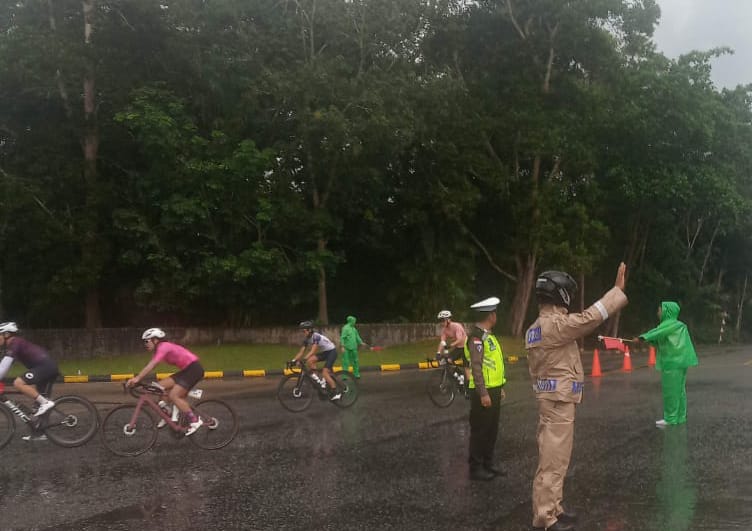 Walau Hujan Deras Polres Bintan Tetap Lakukan Pengamanan Bintan Triathlon 2023