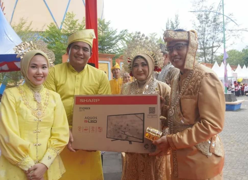 Juara ketiga diberikan kepada Dandim 0315/TPI bersama istri yang kompak dengan pakaian adat Melayu.