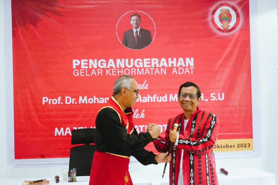 Raja-raja Ambon yang tergabung dalam Majelis Latupati menganugerahi gelar kehormatan adat kepada Menko Polhukam Mahfud MD, sebagai pemimpin yang jujur, berani, dan pelindung masyarakat.