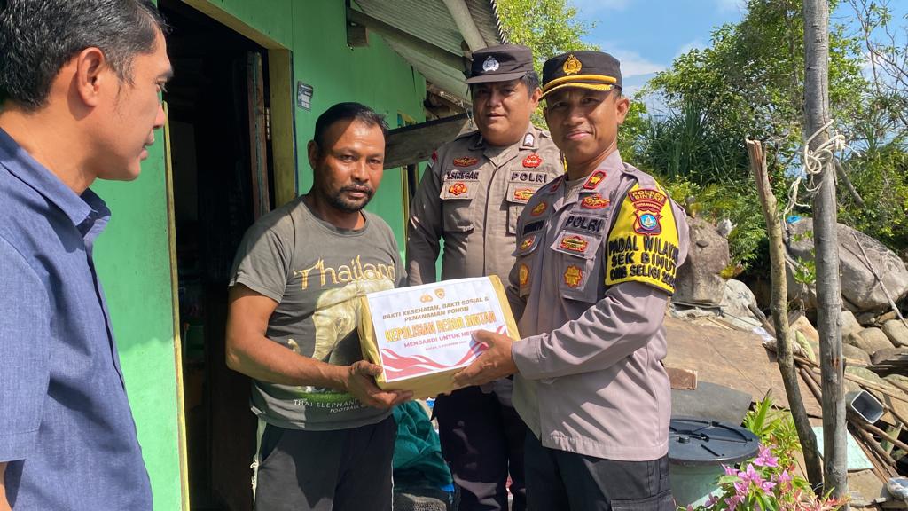 Jajaran Polsek di bawah naungan Polres Bintan juga ikut andil melakukan penanaman bibit pohon dan melakukan bakti sosial dengan memberikan paket sembako kepada masyarakat.