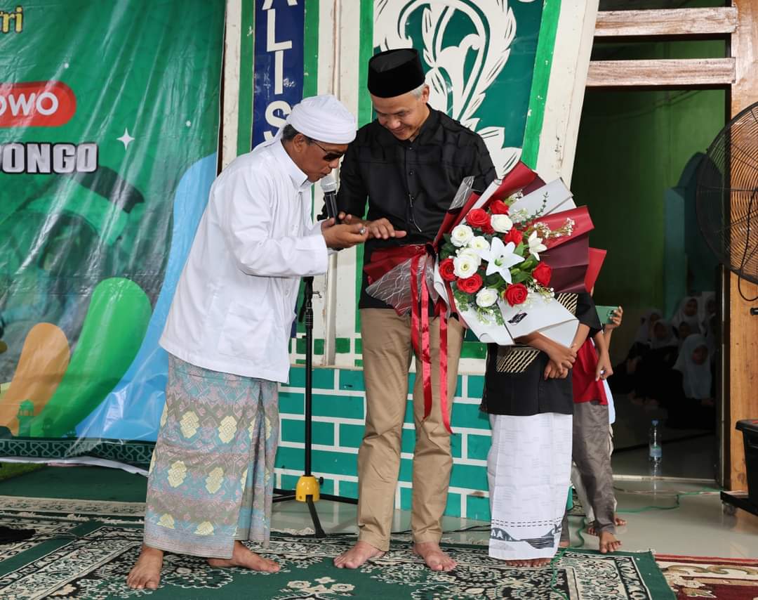 Ada momen istimewa saat bakal calon presiden (bacapres) 2024 Ganjar Pranowo bersilaturahmi ke Pondok Pesantren Hidayatul Fadhola’ Walisongo, Musi Banyuasin, Sumatra Selatan, Senin (6/11/2023).