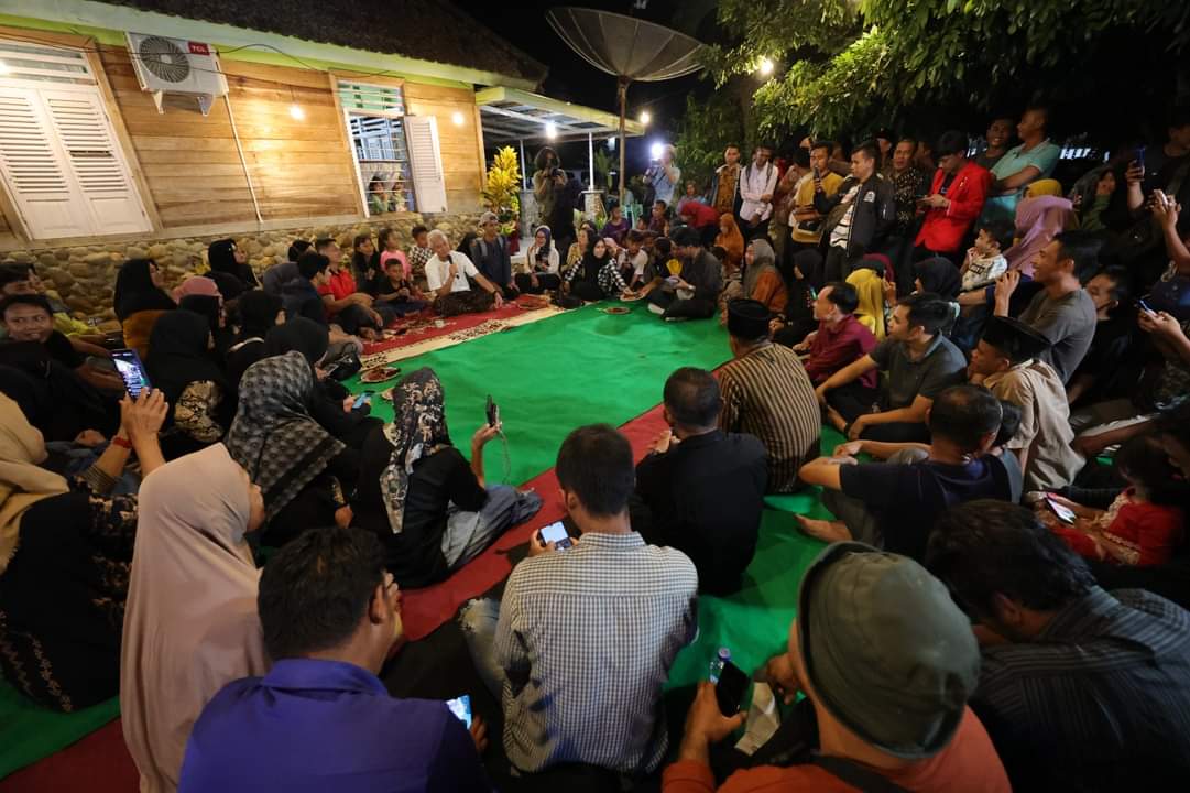 Usai bebersih dan sholat magrib, Ganjar keluar menemui ratusan masyarakat yang sudah berjubel di halaman rumah Tambah. Mereka sudah berkumpul menunggu Ganjar sambil duduk lesehan di atas karpet. Ganjar yang ke luar mengenakan sarung dan berkaos oblong pun menemui mereka dan ngobrol dengan gayengnya.
