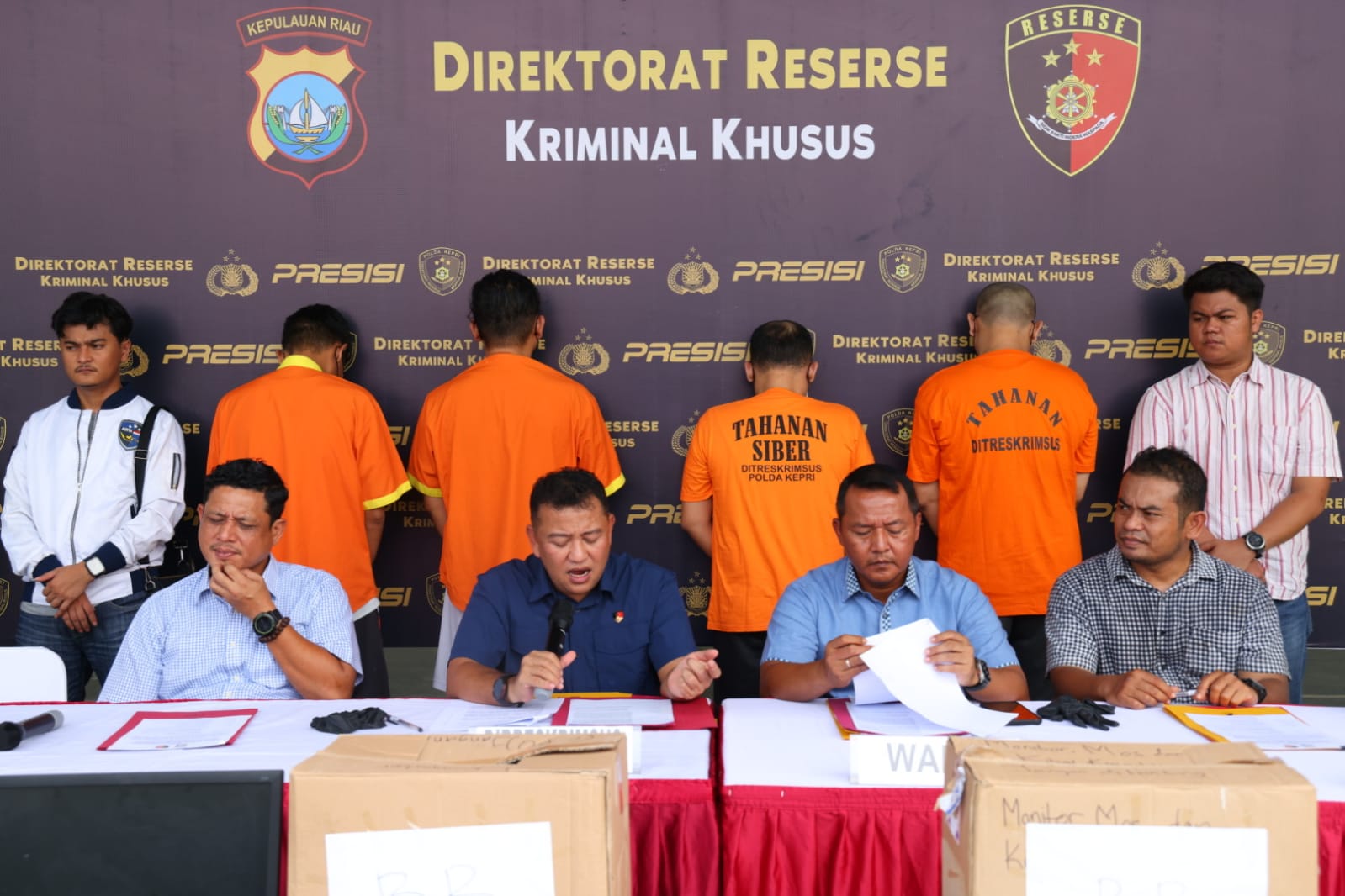Hal tersebut disampaikan langsung saat konferensi pers oleh Dirreskrimsus Polda Kepri Kombes. Pol. Nasriadi, S.H., S.I.K, M.H., didampingi oleh Wadirkrimsus Polda Kepri, Kasubdit 5 Cyber Ditreskrimsus Polda Kepri, Kasubdit 2 Eksus Ditreskrimsus Polda Kepri dan Kasubbid Penmas Bidhumas Polda Kepri, bertempat di Mapolda Kepri, Kamis (9/11/2023).