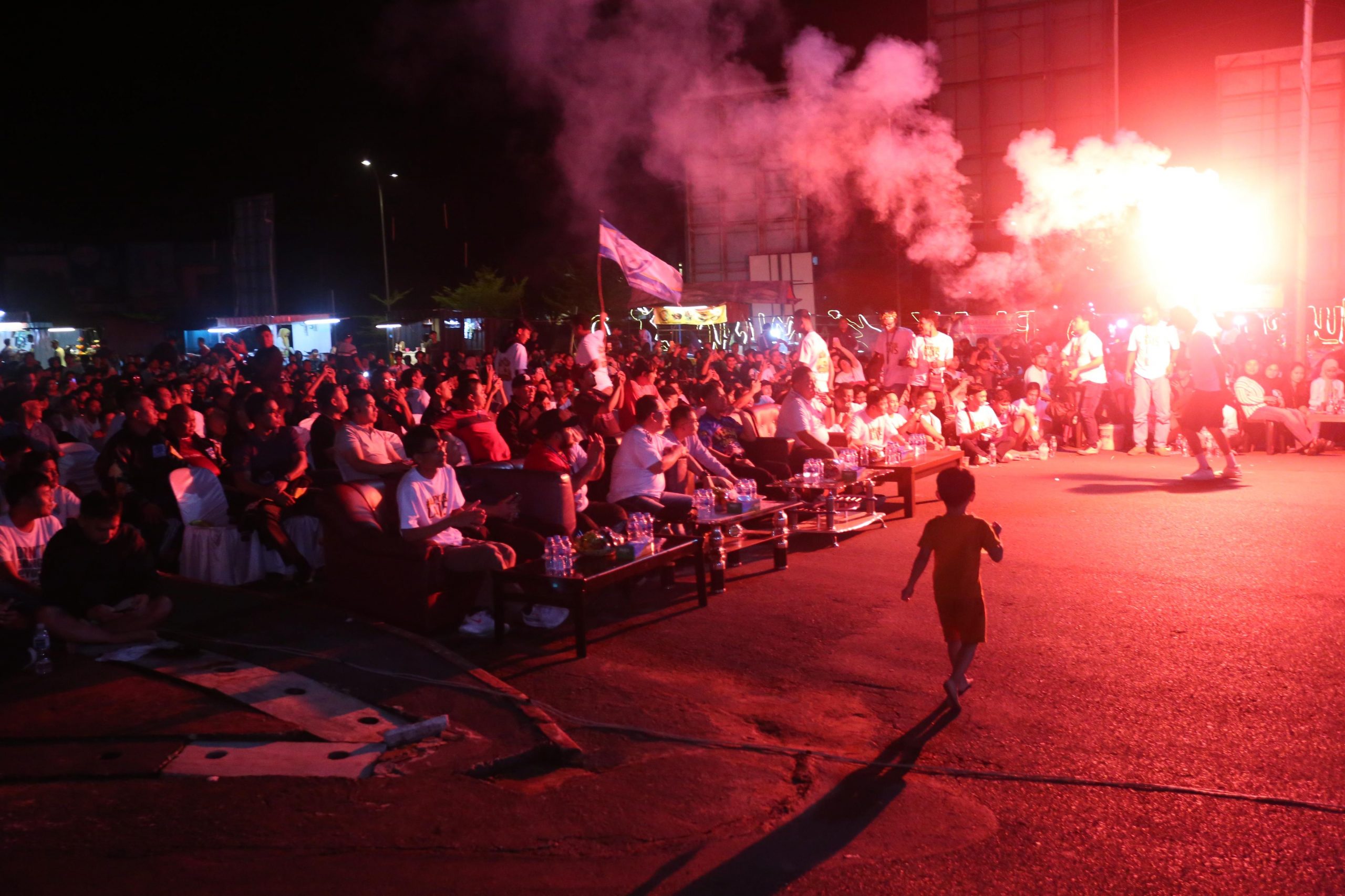 Suasana meriah dan penuh semangat mewarnai jalannya pertandingan. Para penonton bersorak-sorai dan saling mendukung tim favoritnya.
