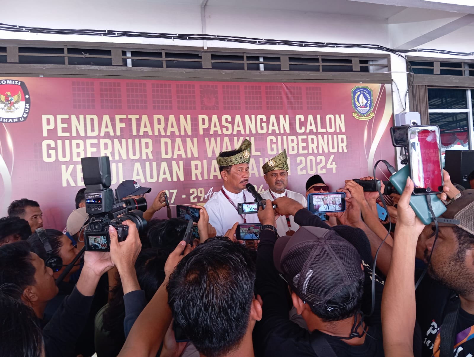 Rudi-Rafiq tiba di Kantor KPU Kepri sekira pukul 13.50 WIB dan diantar oleh para petinggi partai pengusung dan pendukung serta ribuan massa pendukung dan simpatisan lainnya.
