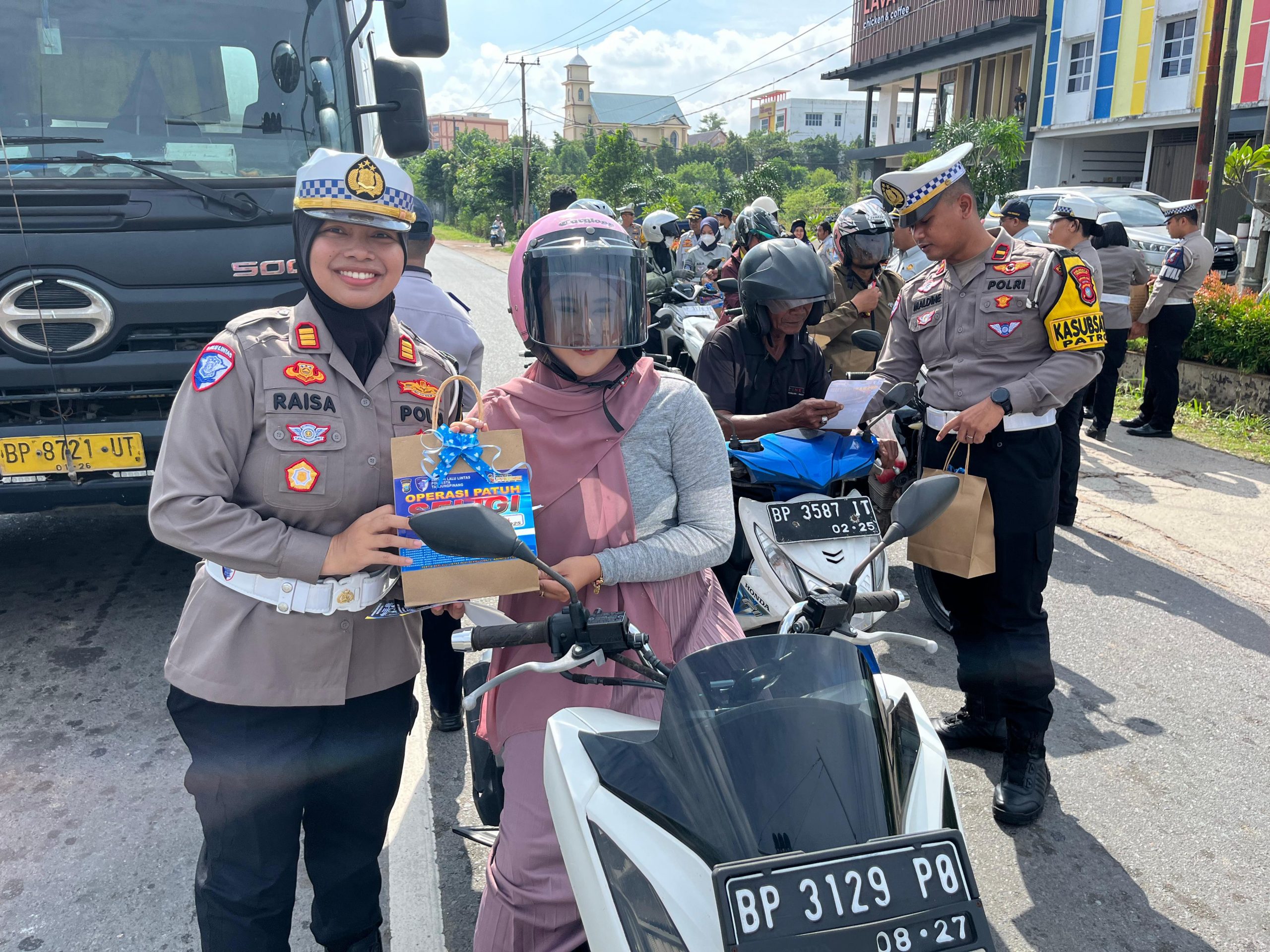 Operasi Patuh Seligi 2025, tidak hanya soal penindakan. Di Kota Tanjungpinang, Sat Lantas Polresta Tanjungpinang memberikan apresiasi kepada mereka yang tertib berlalu lintas, yang digelar dalam kegiatan simpatik. Benar-benar humanis.