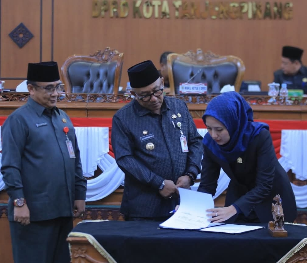 Pemerintah Kota Tanjungpinang bersama DPRD Kota Tanjungpinang sahkan tiga Rancangan Peraturan Daerah (Ranperda) menjadi Peraturan Daerah (Perda) dalam rapat Paripurna, yang dilaksanakan di Ruang Rapat Paripurna, Kantor DPRD, Jumat (12/9/2025).